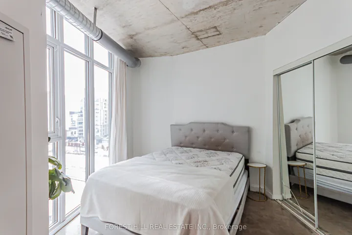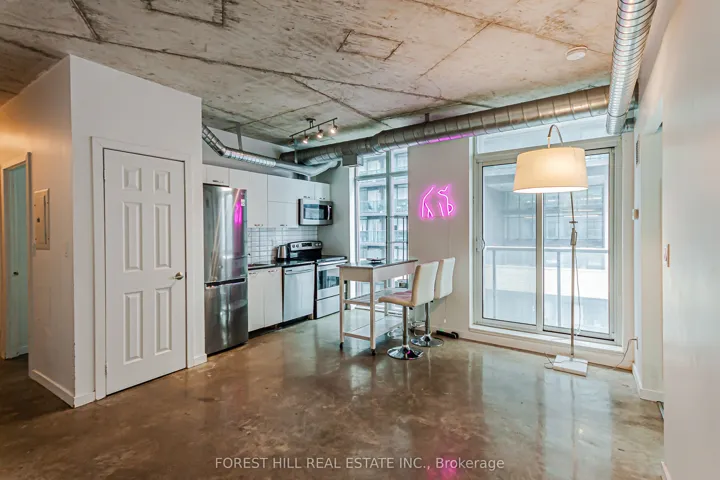 +"PublicRemarks": "Bright and airy soft loft with polished concrete floors, exposed ceilings, and expansive floor-to-ceiling windows creating a striking industrial aesthetic. Open-concept living space flows seamlessly to a private balcony with lake views. Quiet suite with a desirable split two-bedroom layout, both bedrooms offering windows, closets, and abundant natural light. Updated with stainless steel appliances.Offered partly furnished for added convenience. Live in the heart of vibrant Queen West and enjoy excellent amenities, including a gym and pool. Parking and Locker included."