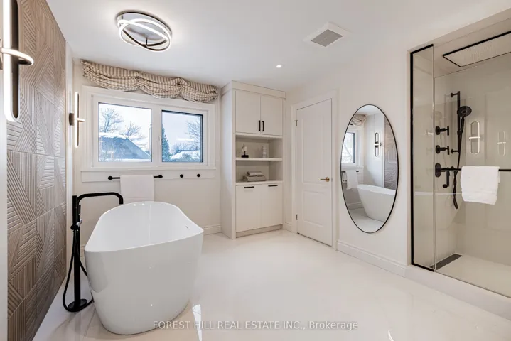 +"PublicRemarks": "Situated in the prestigious St. Andrews neighborhood, this exceptional home offers nearly 5,000 sq. ft. of refined living space, a 4-car tandem garage, and 4 additional in the driveway. Designed across three finished levels, Offering 5 bedrooms, combining elegance with everyday comfort.sun-filled interiors showcase hardwood flooring, soaring ceilings, oversized windows, crown molding, and professional skylights. Formal living and dining rooms provide an ideal setting for entertaining, while the thoughtfully designed layout ensures excellent flow throughout the home. The chef-inspired kitchen is equipped with high-end appliances (WOLF & SUB-ZERO), custom cabinetry, and a spacious island, opening to a breakfast area with walkout to a garden deck and spa pool. The primary suite offers a private retreat with a luxurious 5 piece ensuite(Newly Renovated), including double vanity, custom cabinetry, and glass shower. 2 additional second-floor bedrooms feature semi-ensuite access and large windows. All bathrooms are upgraded with WOODBRIDGE 5-star smart toilets. Finished Basement includes 1,044 sq. ft. of self-contained space with a separate entrance, featuring a recreation and media room with built-in speakers, a 10-foot ceiling exercise room, Rough in sauna, and a 3 piece bath. The professionally landscaped backyard is a private oasis, complete with sprinkler system, SWIMLIFE Jacuzzi spa pool, cabana, covered patio with adjustable aluminum canopy, and built-in BBQ-perfect for entertaining or relaxing in style*****Highly-Coveted School Zoning:Owen Ps/St Andrew's Jr/York Mills CI--Close To Top-Rated Private School"