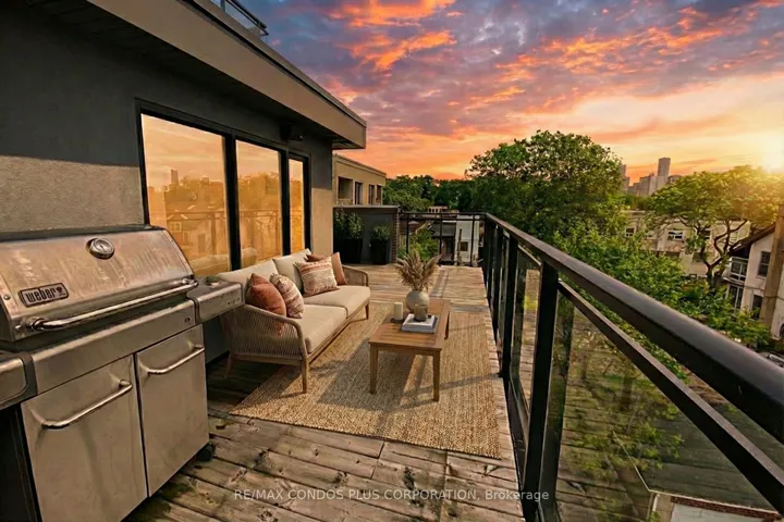 +"PublicRemarks": "Welcome home to the Loft House at 483 Dupont Street - where contemporary elegance meets the vibrant heartbeat of the Annex. This exceptional 1-bedroom plus den executive suite offers a rare opportunity to experience luxury living in one of Toronto's most exclusive boutique developments. Step inside and feel the warmth. Soaring 11-foot ceilings and floor-to-ceiling windows bathe the open-concept main floor living space in natural light, while pristine new 2026 flooring anchors the sophisticated interior with radiant in-floor heating and a rare gas fireplace. The gourmet kitchen - a chef's dream - features sleek quartz counters with a large breakfast bar seating, professional-grade gas cooking, and seamless flow into your entertaining space. Your private retreat awaits upstairs: a generous bedroom sanctuary with sweeping windows, intimate balcony access, and a spa-inspired 5-piece bathroom featuring heated floors, dual vanity, and separate soaker tub and shower. Designer ripplefold curtains frame spectacular southeast views, while the rare gas fireplace adds ambiance on crisp evenings. Enjoy a third-floor office nook and plenty of custom storage and closet organizers. But wait, there's more! The true showstopper. Your private rooftop terrace - over 400 square feet of urban paradise complete with a gas line, Weber BBQ, Outdoor Furniture and breathtaking south-facing views of tree canopies and the CN Tower. Host sunset dinners, morning yoga, or simply escape to your sky-high sanctuary. Thoughtful touches throughout include central vacuum, in-floor radiant heating on the main floor, and a secure underground parking spot. Enjoy a bonus ground-floor terrace that offers yet another private outdoor retreat. Steps to the Bloor and Dupont subway lines, world-class dining, boutique shopping, and lush parks. Experience the Annex Loft House difference, where every detail whispers luxury and every moment feels extraordinary. See Video Tour for more!"