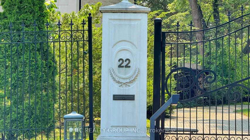 +"PublicRemarks": "An icon among Toronto's finest estates. Welcome to 22 Park Lane Circle, one of Toronto's most prestigious homes nestled in the exclusive enclave of Bridle Path neighbourhood. This grand estate offers a rare combination of timeless elegance, modern luxury, and unparalleled privacy on a beautifully landscaped lot. Sitting on an impressive 4 acre parcel surround by mature trees, lush gardens, and a gated entrance that ensures total seclusion. Thoughtfully designed with classic European influences and crafted with the highest quality materials throughout. Over 11,000sqft of refined living space, including 5 bedrooms and 7 bathrooms, with soaring ceilings, custom millwork and floor to ceiling windows offering breathtaking views of the grounds. Rear gardens offers picturesque terraced lawns, walking paths, seating areas and romantic ravine views. The views are so spectacular, it's easy to forget you're inside the city. Large indoor pool that can be enjoyed year round. Minutes to top private schools, quick access to major highways, surrounded by ravines, parks and serene nature. 20 Park Lane Circle is a private guest house. Offers 1 bedroom, 4pc bath, kitchen and open living dining area for visitors. Private 4 vehicle garage, dual vehicle driveway and separate gated entrance."