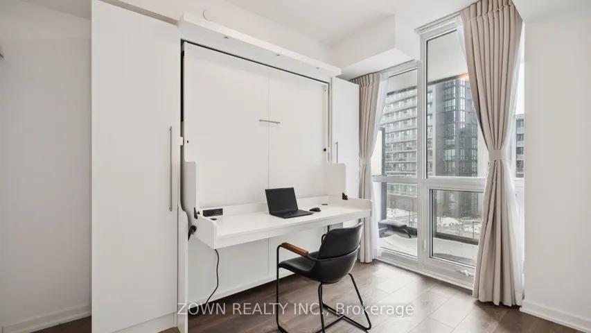 +"PublicRemarks": "Welcome to The Peak at Emerald City, offering unbeatable walkability in the heart of Don Mills & Sheppard. Just steps to Fairview Mall and the TTC subway, with a grocery store and restaurants conveniently located on the building's retail level. Enjoy quick access to Highways 404, DVP, and 401, plus a community center and park directly across the street. This stylish 1-bedroom suite features 9' ceilings, a spacious balcony, and contemporary finishes. A custom built-in Murphy bed transforms into a sleek home office, complete with integrated power outlets, LED lighting, and storage cabinetry. Resort-style amenities include indoor pool, hot tub, fitness center, saunas, concierge, guest suites, dining room, residents' lounge, games room, outdoor patio & BBQ area. Includes 1 parking space and 1 locker. Stainless steel built-in appliances and front-load laundry. Building amenities include a large gym, indoor pool/hot tub, sauna, theatre room, dog wash, party room, family room with ping pong table, outdoor BBQ and 24-hour security."