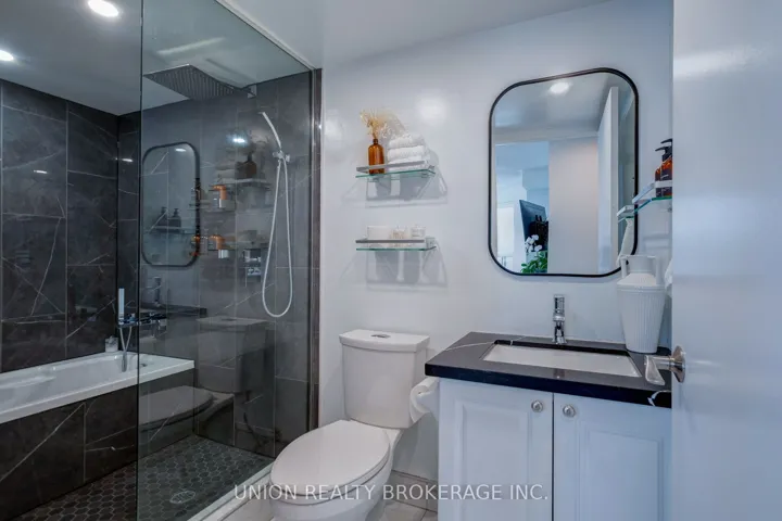 +"PublicRemarks": "Welcome to Aqua Condominium on Queens Quay, a fully renovated corner 2-bedroom unit offering spectacular southeast lake views and exceptional waterfront living. Renovated within the last few years, this well-laid-out suite combines modern upgrades with timeless views in an unbeatable location. Features include smart light switches and outlets, dimmable LED lighting, smart thermostats, and custom luxury window blinds, adding comfort and efficiency throughout.Enjoy unobstructed views of the Toronto Harbourfront, CN Tower, Billy Bishop Airport, and year-round fireworks from your private balcony-an ideal extension of your living space. In winter, the scenery feels like living inside a snow globe; in summer, it's vibrant, sun-filled waterfront living with ever-changing lake and city views.The modern kitchen is bright and functional with a large lake-view window, new oven and fridge, upgraded countertops, mosaic backsplash, refreshed cabinet facings, new faucet, and tiled flooring-perfect for everyday living and entertaining. The spa-inspired bathroom has been fully updated with a dual shower head and rain shower, new vanity, countertop and sink and new bathroom and shower tile. New flooring flows seamlessly throughout the living room, dining area, and bedrooms, complemented by fresh paint. A rare offering includes owned parking with a spacious tandem locker (approx. 9' x 5.5' x 9.5') complete with 7ft tall storage shelving -exceptional storage for waterfront living. Building amenities include 24-hour concierge, furnished guest suites, rooftop garden with lounge, fitness centre, BBQ areas, sundeck, billiards room, and spectacular lake and city views. Steps to the Harbourfront, minutes to Sugar Beach, waterfront trails, shops, dining, and TTC at your doorstep-this is turnkey waterfront living at its finest. Definitely do not miss checking out the rooftop amenities, the views alone are worth the elevator ride up!"
