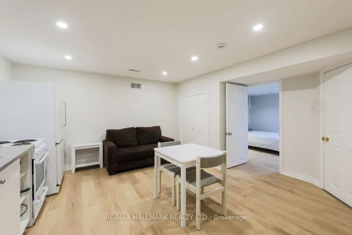 +"PublicRemarks": "Modern 1-bedroom suite featuring high ceilings, new engineered flooring, and a 4-piece bathroom. Well-appointed kitchen with fridge, stove, and microwave, plus the comfort of central air conditioning. Shared laundry on site. 1 Parking Spot. A great opportunity for a tenant seeking a stylish, low-maintenance living space in a convenient location."