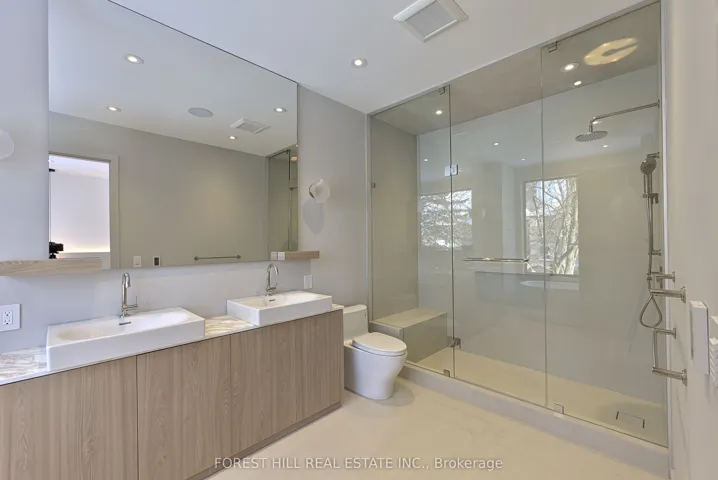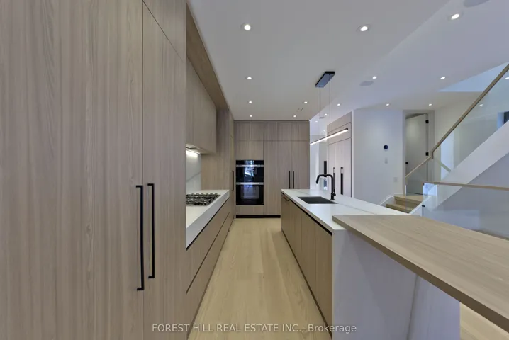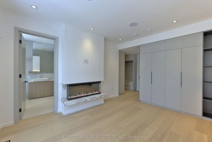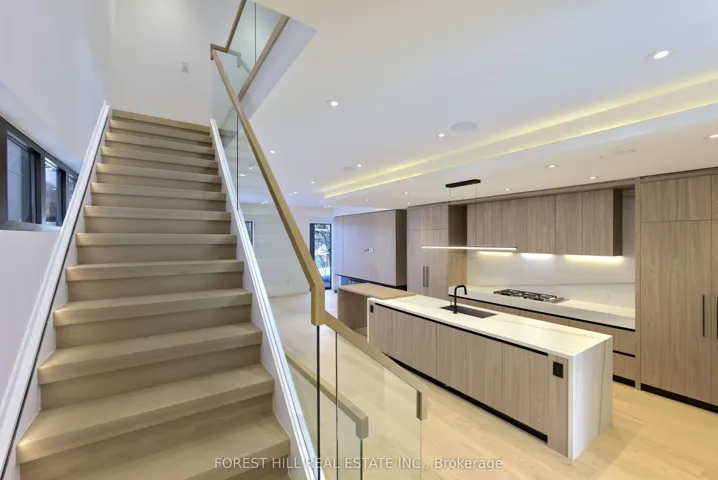 +"PublicRemarks": "Experience refined luxury living in this stunning modern home on an exceptionally rare 27.5-foot lot. Boasting four bedrooms-each with a private ensuite-this residence blends modern living with everyday comfort. A heated foyer welcomes you into a living and dining area highlighted by wide-plank hardwood flooring and floor to ceiling windows. The house is operated by Control 4 smart home system and covered by security cameras.The gourmet kitchen showcases Miele built-in appliances including cooktop, oven, microwave, and integrated refrigerator with freezer, all complemented by soft-close cabinetry with Blum hardware and a striking waterfall island with a breakfast nook. The family room offers a 72" electric fireplace, built-in wall unit, surround-sound rough-in, and expansive patio doors opening onto a covered composite deck-perfect for year-round entertaining with BBQ rough-in and integrated speaker system.Retreat to the serene primary bedroom featuring a custom walk-in closet, integrated headboard with niche lighting, modern fireplace with TV rough-in, and a spa-inspired five-piece ensuite complete with heated floors and House of Rohl fixtures. Each additional bedroom includes its own ensuite and built-in closet.The fully finished basement is designed with radiant heating, a full custom kitchen with elegant AGT finishes, quartz surfaces, and a private bedroom suite-ideal for extended family or guests. With parking for up to five vehicles and exceptional craftsmanship throughout, this home defines contemporary elegance in every detail.Conveniently located in family friendly neighborhood, close to transit, grocery stores, variety of restaurants and easy access to the 401."