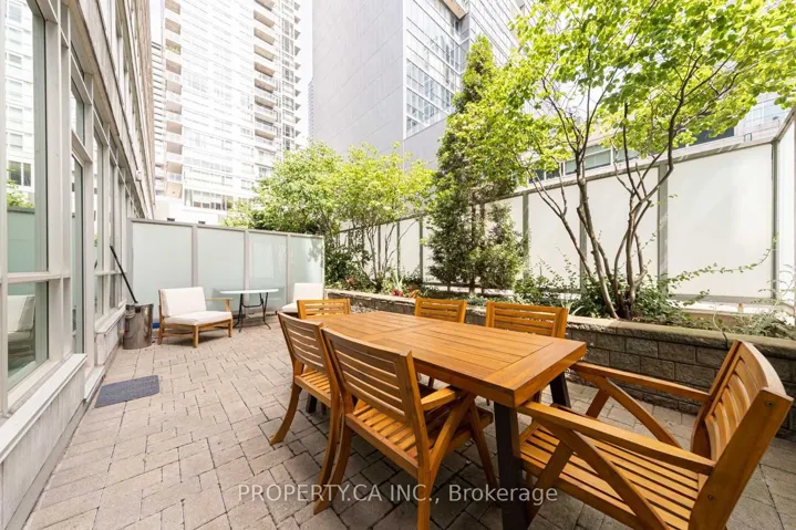 +"PublicRemarks": "Rare garden terrace suite in the prestigious SOHO MET COMPLEX in Entertainment District, Downtown Toronto. Gorgeous ground floor 615 sq.ft. unit features 10 ft. ceilings, hardwood throughout, expansive wall-to-wall windows, custom roller blinds, full size appliances, brand-new fridge. Four pc bath with marble, large bedroom with wall- to wall-closet. Walk out to private enclosed 339 sq ft terrace with mature garden. All utilities included except the internet. Short walk to Financial District, theatres, TTC, hospital, lake. Parking space is available for $150 monthly."
