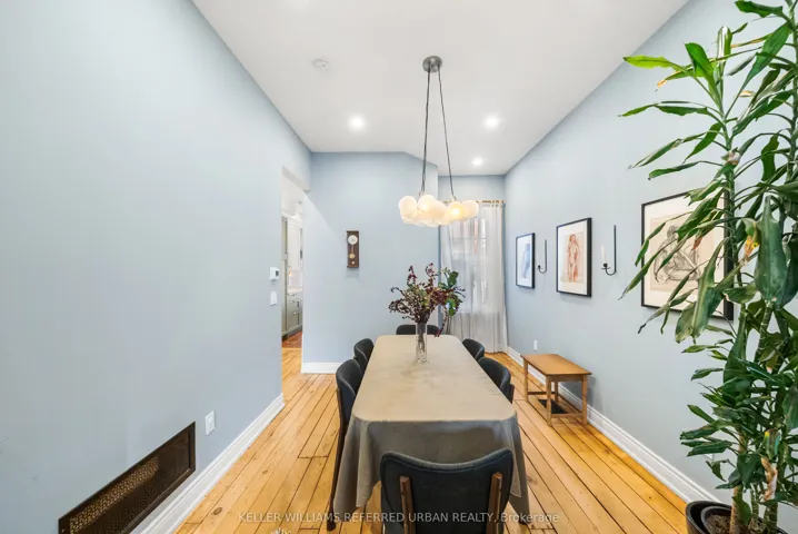 +"PublicRemarks": "Recently renovated 3-storey semi-detached house on a quiet, tree-lined street in one of Toronto's most sought-after west-end neighbourhoods. Four bedrooms, 2 bathrooms, in-home laundry, central air conditioning, and gas forced-air heating across 1,100 sq. ft. of above-grade living space plus a partially finished basement. The open plan main floor features 10-foot ceilings, beautifully restored original wood floors, and a new kitchen with terracotta tiles, underfloor heating, and built-in appliances. A powder room with tasteful wainscoting completes the main level. The second floor offers three bedrooms - including a generous primary - all with hardwood floors, plus a new four-piece bathroom with ceramic tile. The third floor provides a large fourth bedroom ideal as a home office, guest room, or as a studio. The lower level includes a rec room and dedicated laundry area. A private paved backyard is just off the kitchen and makes a great summer dining area. Steps from everything that makes this neighbourhood special: 30-second walk to Osler Playground and splash pad, 2 minutes to Ossington's restaurant and bar scene, 10 minutes to Trinity Bellwoods Park and Queen West. Walk Score 91. Top-rated schools, TTC, and grocery all within easy reach. Street permit parking available."
