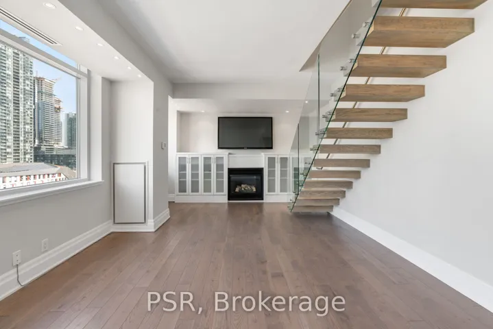+"PublicRemarks": "This beautifully renovated two-storey penthouse suite offers a thoughtfully designed layout spanning 1,315 sq. ft. of interior living space. The main level features a spacious living and dining area anchored by a gas fireplace, along with a large foyer adjacent to a powder room for added convenience. The suite features engineered hardwood floors throughout and an abundance of windows, allowing for exceptional natural light. The upper level offers a well-appointed primary bedroom complete with a walk-in closet and an ensuite bathroom, while the second bedroom also features its own ensuite. Laundry is conveniently located on the second level. Ideally situated steps to grocery, restaurants, LCBO, banks, and public transit, with close proximity to King West, Queen West, and some of Toronto's finest dining. Residents enjoy access to top-tier building amenities. One parking space and one locker included."