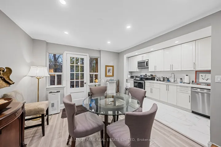 +"PublicRemarks": "Main-floor residence in prestigious Lytton Park with serene views of the Chatsworth Ravine. This is not your typical rental-offering a rare blend of space, privacy, and uninterrupted ravine views in a quiet, residential setting. Recently renovated and thoughtfully maintained with quality finishes throughout, the home features 9-foot ceilings, an open-concept living area, crown moulding, and a statement fireplace mantle. Enjoy forested views from the private balcony, living and dining areas, kitchen, and bedrooms, creating a true sense of retreat while remaining close to to transit and neighbourhood amenities. Complete with stainless steel appliances, in-suite washer & dryer, and attentive ownership located nearby."