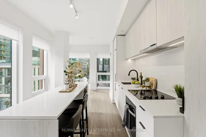 +"PublicRemarks": "Experience elevated urban living in this stunning 3-bedroom, 2-bathroom residence offering 993 sq.ft of smart-space at the Saint Condos by Minto. This bright corner suite is wrapped in floor-to-ceiling windows, with a 9.5 ft ceiling, and incredible natural light. Enjoy a beautifully finished interior featuring stainless steel appliances, a contemporary kitchen with Caesarstone counters and backsplash, a sleek kitchen island, modern cabinetry, undermount sinks, and premium hardwood flooring throughout. The spa-inspired bathrooms include high-end finishes, with a luxurious 3-piece ensuite in the primary bedroom. The unit includes remote-controlled automated blinds on all windows plus lots of upgrades throughout. A rare underground parking with EV charger included: an exceptional value in this premier downtown residence! The Saint is Toronto's new landmark wellness residence, offering 17,000 sq ft of amenities, including over 10,000 sq. ft dedicated to health + wellness: Rain Chromotherapy Room, Salt Meditation Room, Spa Rooms, Yoga + Spin Studio, Fitness Centre, Co-Working Lounge, Party Room & more. Plus, the Smart Lock system makes this building very safe. Steps to the Financial District, TTC, Eaton Centre, St. Lawrence Market, many fine dining options, hospitals & universities. A truly remarkable opportunity to live in one of downtown Toronto's most desirable new buildings."