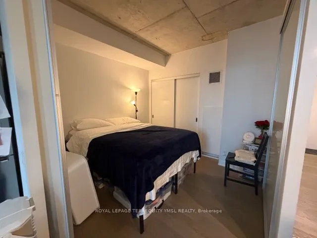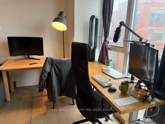 +"PublicRemarks": ""The King East!" A boutique condo-loft in the trendy King East Designer's District. This bright south-facing 1-bedroom suite offers approximately 543 sq. ft. with pleasant street views. Features include hardwood flooring throughout, a 9' exposed concrete ceiling, and a sleek Euro-style Scavolini kitchen with quartz countertops, under-mounted sink, and stainless steel appliances including a gas stove, fridge, dishwasher, and microwave. Stacked washer and dryer included. Enjoy free access to the party room and BBQ area on the second-floor terrace. 24-hour streetcar at the doorstep. Walking distance to the Distillery District, George Brown College, St. Lawrence Market, and the Financial District. Walk Score 99. One storage locker included - an ideal urban home for stylish downtown living."