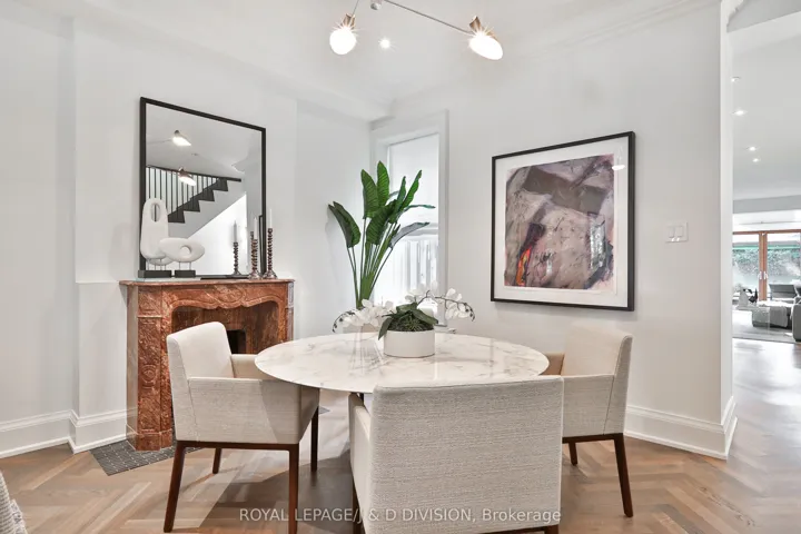 +"PublicRemarks": "This impeccably renovated 3-storey Victorian blends timeless architecture with elevated modern design. A classic entry foyer opens to the elegant living and dining rooms anchored by 2 fireplaces, soaring ceilings, herringbone hardwood floors, custom media cabinetry and expansive windows that flood the space with natural light. The Scavolini kitchen features Calacatta marble counters, professional-grade gas range, premium appliances and oversized pantry. Open-concept family and breakfast areas offer flexible living beneath 2 skylights, with double sliding doors to a tranquil city garden with Ipe/teak deck and garage access. The 2nd floor offers 2 spacious bedrooms, open study adaptable as a 4th bedroom, renovated marble bath with heated floors and soaker tub, and serene treetop deck with CN Tower views. The 3rd floor primary retreat includes a 5-piece ensuite, Italian Poliform walk-in closet and dressing area, custom full-height privacy door, built-in cabinetry and Juliette balcony. The finished lower level adds a media room with window seat, additional bedroom, office or fitness space, 3-piece bath, laundry and abundant storage. 6 integrated flat-screen TVs with Sonos are included. Live in luxury or lease strategically - generating over $550,000 in rental income over the past 6 years. Steps from Queen West, Kensington Market, AGO, Grange Park, TTC and the Financial and Entertainment Districts. An exceptional offering for buyers valuing architectural distinction, cultural vibrancy and understated privacy."