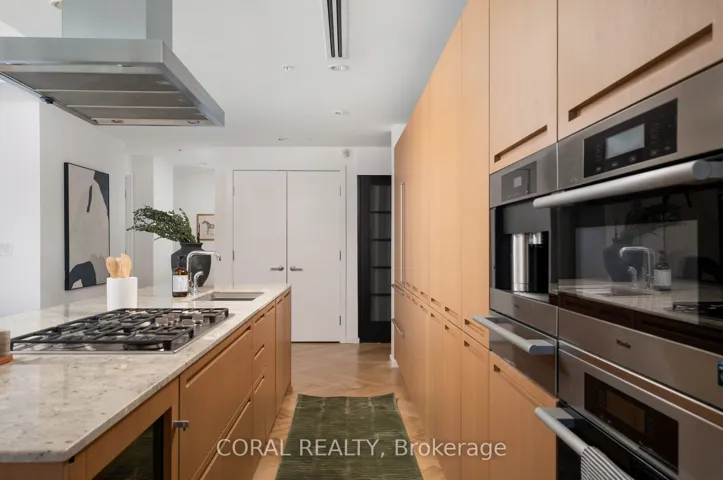 +"PublicRemarks": "Experience elevated living in this beautifully appointed residence with sought-after NW exposure, offering abundant natural light and stunning sunset views. Freshly painted and professionally deep cleaned, this suite is truly move-in ready. Designed with refined taste, the home features elegant herringbone hardwood floors and a chef-inspired Boffi kitchen complete with an integrated Sub-Zero fridge, Miele built-in appliances, and a gas cooktop-perfect for both everyday living and entertaining. A sleek wine/beverage cooler adds an extra touch of sophistication. Unwind in luxurious Carrara marble-clad bathrooms and enjoy the convenience of custom walk-in closets in both bedrooms and hallway storage, along with a spacious walk-in closet in the primary suite. A dedicated laundry room provides added functionality and ease. Indulge in a hotel-inspired lifestyle with full-service amenities including a 24-hour concierge and doorman, spa access, and full access to the Miraj Hammam Spa (all on 5th floor). Wellness offerings include a 24-hour fitness center, yoga studio with scheduled classes, and a 20-metre indoor lap pool, hot tub, infrared sauna, and steam rooms. Enjoy in-building access to several high-end dining options, including The Lobby Lounge, Bosk Restaurant, and Mott32, along with hotel bar & lounge service and room service at your convenience.Complete with 1 parking space and 1 locker. Ace Carwash & detailing conveniently located in P1. A rare opportunity to own a sophisticated home that seamlessly blends luxury, comfort, and five-star living."