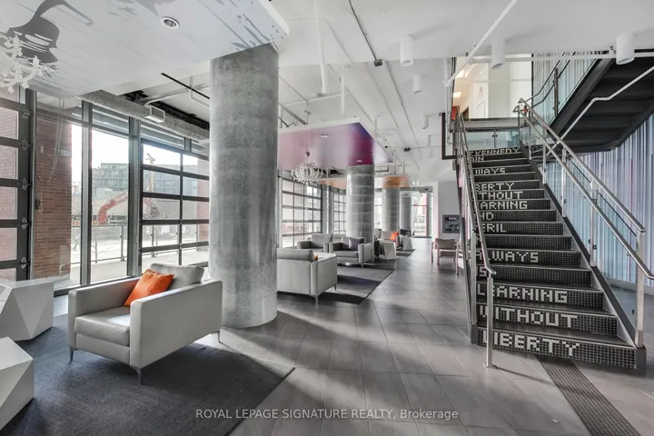 +"PublicRemarks": "Your dream two-storey loft in the heart of vibrant Liberty Village awaits. This spectacular 1-bedroom + den loft-like condo spans approximately 830sqft and is bathed in natural sunlight through dramatic 18-foot floor-to-ceiling windows. Featuring soaring ceilings, exposed concrete accents, and an open-concept layout, this stylish loft delivers true modern urban living.The renovated contemporary kitchen is equipped with full-size stainless steel appliances and seamlessly integrates into the living and dining space, perfect for entertaining. A spacious open-concept den flows effortlessly into a cozy bedroom - both loaded with custom closets, while two well-appointed bathrooms add everyday convenience, including a 2-piece on the main level and a 4-piece upstairs. Step outside to your private south-facing balcony, ideal for morning coffee or relaxing evenings. Residents of Liberty Place enjoy exceptional amenities, including a fully equipped fitness centre, party room, and 24-hour concierge service. Surrounded by restaurants, parks, grocery stores, and public transit, this loft is perfectly suited for young professionals or couples seeking an upscale downtown lifestyle. Includes parking and storage locker. Simply move in and enjoy everything Liberty Village has to offer."