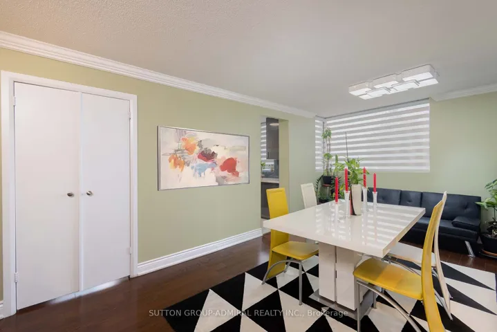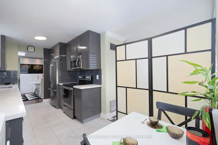 +"PublicRemarks": "Rare value: a renovated, extra-large 1,300+ sq ft corner suite with extensive built-in storage and custom millwork throughout, including wall units, closets and a drop-down Murphy bed. Originally a 3-bedroom, now reconfigured into an expansive 2-bedroom layout. Modern kitchen with premium appliances and quartz countertops. Two fully renovated bathrooms with heated towel rack. Spacious primary bedroom with walk-in closet. Second bedroom features built-in shelving and Murphy bed. Hardwood floors throughout, custom closet organizers and high-quality finishes. Maintenance fees include all utilities and cable TV. Full-service building with gym, out door pool, concierge, party/meeting rooms, games room and sauna. Steps to G. Ross Lord Park, trails, sports fields and TTC at your doorstep with direct access to Finch Station. The living/dining room floor is covered with a protective cover with great hardwood floors underneath."