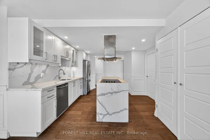 +"PublicRemarks": "Experience modern living in this FULLY RENOVATED bright, open-concept corner unit. Featuring high-end finishes and functional upgrades, this suite offers a seamless blend of style and value. The renovated kitchen features stainless steel appliances, a large centre island, and a massive, over 130 sqft eat-in area with a walk-out to the balcony where you can enjoy unobstructed South-West views. This suite features modern flooring, pot lights, and a beautiful accent wall in the living room. Added bonus of a spacious sun-filled enclosed den that can easily be used as an office. Enjoy the convenience of an oversized storage room right inside your unit. Low maintenance fees which include all utilities and cable and internet! Enjoy fantastic amenities like an outdoor pool, tennis court, gym, sauna, 24 hour gatehouse and party room. EXRA-WIDE parking oversized parking spot right by entrance. This building is perfectly situated near major transit, schools, grocery shopping and places of worship. This is truly a turnkey suite you can be proud to call your home."