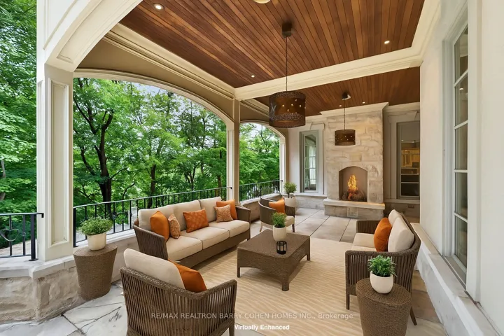 +"PublicRemarks": "Backs Onto Ravine! Perched gracefully at the highest point of Hoggs Hollow, this French Château inspired masterpiece sits on a spectacular 239.08 x 207.81 ft ravine lot (approx. 1.14 acres). Designed by Dee Dee Taylor Hannah and built by award-winning builder Michael Rossini, this timeless stone estate offers over 10,000 sq.ft. of luxurious living space, blending European elegance with modern comfort. The homes distinctive curved and symmetrical design showcases architectural artistry rarely seen today. Featuring 4 bedrooms with ensuites, 9 washrooms, and a 3-car garage with a circular driveway accommodating up to 15 cars, all principal rooms face west, overlooking the serene ravine. A grand marble foyer, curved hallways, and custom millwork opens to elegant living and dining rooms that walk out to the ravine and garden. Two libraries on main floor, five fireplaces, built-in speakers, 10-ft ceilings, and hardwood floors throughout. The gourmet kitchen with double granite islands and an open-concept family room with motorized curtains creates a warm and inviting space for entertaining.Step out to a 700 sq.ft. patio with outdoor fireplace and panoramic ravine views. The primary suite features a lavish 9-piece ensuite, his & her walk-in closets, and heated bathroom floors. The walk-out lower level wth heated floors includes a home theatre, wine cellar, sauna, wet bar, nanny/guest ensuite, and a recreation room with fireplace opening directly to the backyard oasis.The heated concrete pool with cascading waterfall, framed by mature trees, creates a private, resort-like retreat. A rare offering combining elegance, privacy, and tranquility, just moments from the Granite Club, top private schools (Crescent, TFS, Havergal, UCC, BSS), fine dining, and Rosedale & Don Valley Golf Clubs.A true statement of taste, craftsmanship, and enduring luxury in one of Torontos most prestigious enclaves."