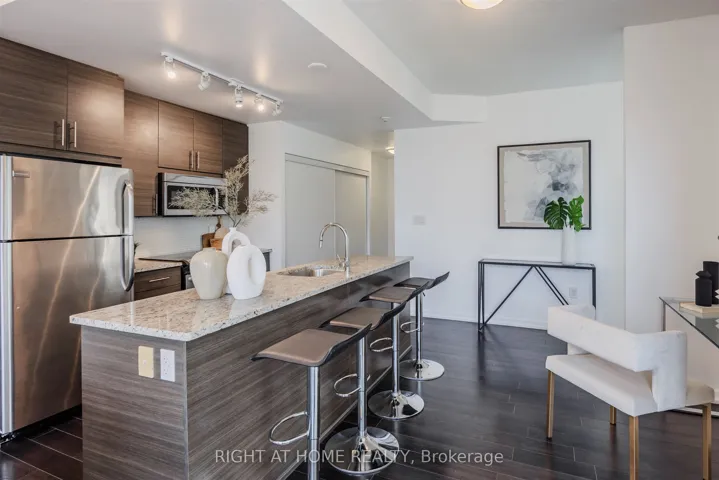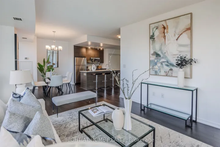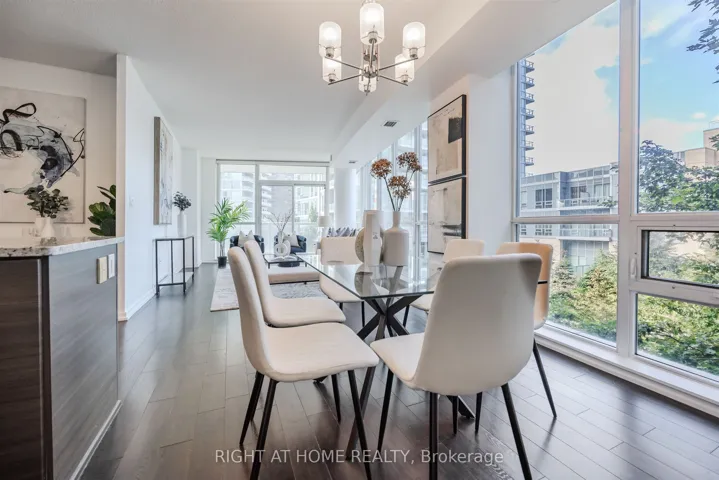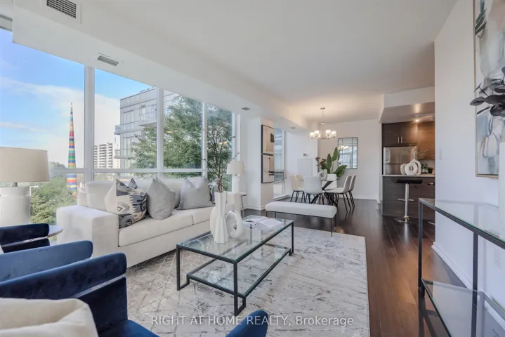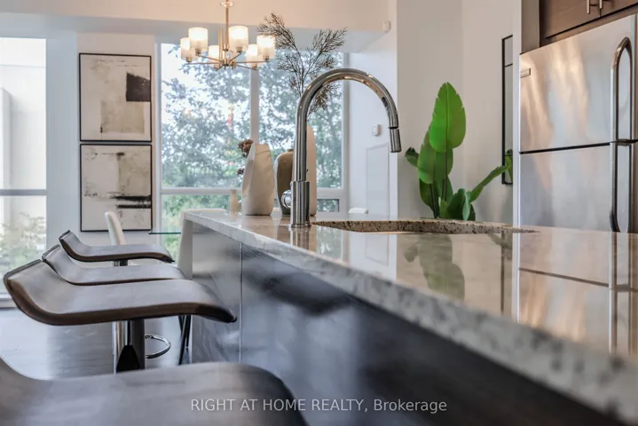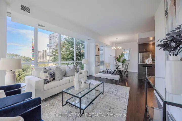 +"PublicRemarks": "*PUBLIC TRANSIT AT YOUR DOORSTEP* Welcome to an exquisite luxury condo, nestled in the prestigious Emerald City Community. This stylish residence offers more than one thousand square feet of living space, and blends modern sophistication with timeless charm, creating a truly elevated living experience. Upon entry, you're welcomed into a freshly painted interior featuring a sun-filled open-concept living and dining area with gleaming floors, soaring 9 foot ceilings, elegant light fixtures, and floor to ceiling windows. The chef-inspired kitchen is equipped with premium stainless steel appliances, granite countertops, a custom backsplash, generous cabinetry, and a convenient centre island. The expansive primary bedroom offers a walk in closet and a four piece ensuite. Enjoy a spacious 177 square foot balcony overlooking the serene courtyard and plush greenery, plus the convenience of one parking space and one locker. At Emerald City, residents benefit from an array of upscale amenities including a cutting-edge fitness center, swimming pool, hot tub, party room, games room, and 24-hour concierge service. Move right in and start enjoying the lifestyle you deserve! The home is conveniently located next to shops, dining, great schools, highways 401 and 404/DVP, and public transportation including Don Mills Subway Station at your doorstep, providing the ultimate in urban living."