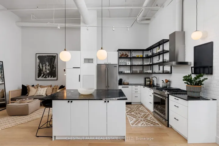 +"PublicRemarks": "***Open House Sunday 2-4pm*** Bright, airy, and undeniably authentic, this magazine-worthy residence at 90 Sumach captures the essence of loft living. Soaring 14-foot ceilings and expansive windows flood the approximately 1,600 square feet with natural light, amplifying the scale and architectural integrity of the original conversion. Timeless, neutral renovations honour the building's industrial roots while introducing refined, modern comfort. The kitchen is thoughtfully designed with stainless appliances, custom cabinetry, and generous workspace - equally suited to casual mornings or elevated entertaining. Defined living and dining areas create a sense of intention within the open plan, balancing volume with function. Two well-proportioned bedrooms and two baths provide privacy and flexibility, while custom built-ins throughout add polish and practical storage. Life at 90 Sumach, formerly known as Brewery Lofts, extends beyond the suite. Mingle with neighbours on the landscaped rooftop terrace and take in city views above the treetops. Step outside to explore the cafés, parks, and restaurants of Corktown, Leslieville, and the Distillery District, with quick access to the DVP, Gardiner Expressway, Union Station, and financial district. The building needs little introduction - one of Toronto's most celebrated loft conversions, known for its scale, character, and enduring appeal. For those who understand true loft living, this one speaks for itself. Authentic volume, timeless architecture, unmistakable presence."