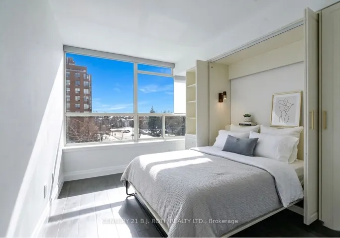 +"PublicRemarks": "This beautifully renovated Tridel-built 2-bedroom, 2-bathroom condo with solarium offers luxury, functionality, and exceptional value. With over $100,000 spent on renovations in 2026, this stunning suite features 6" hickory engineered hardwood floors, a brand-new kitchen with never-used stainless steel appliances and a full-size built-in pantry, updated lighting, custom remote control blinds throughout, smooth ceilings, fresh white paint including all doors and baseboards, and new window glass installed in April 2026. The versatile solarium can serve as a home office or potential third bedroom, while the spacious primary retreat boasts a custom 10-foot-wide built-in wardrobe plus a walk-in closet. The second bedroom includes a space-saving Murphy bed, and the second bathroom features a convenient walk-in tub that can be converted to a glass-enclosed shower if desired. Enjoy 8-foot clear ceilings, in-suite stackable laundry, and a covered south-facing balcony with access from both the solarium and primary bedroom, offering beautiful city views. Maintenance fees include heat, hydro, and water, and residents enjoy a secure gatehouse with 24-hour security plus premium amenities including an outdoor pool, gym, library with pool table, sauna, and separate men's and women's locker rooms. The unit includes one underground parking space, one storage locker, ample visitor parking, and is just steps to the Toronto Transit Commission, with easy access to parks, top-rated schools, shopping, dining, and major commuter routes-making this a turnkey opportunity in a highly connected and desirable neighbourhood. Custom built-ins offer great storage and functionality and can be removed to suit your personal style."
