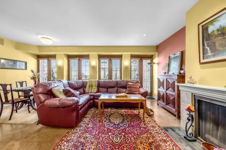 +"PublicRemarks": "Nestled in a boutique condominium building surrounded by stately homes and mature greenery, this charming suite offers approximately 989 sq. ft. of thoughtfully designed living space in one of Toronto's most coveted neighbourhoods. A welcoming foyer entry opens to an expansive living and dining room, beautifully anchored by a rare wood burning fireplace, the perfect setting to unwind. A wall of windows with four Juliette balconies brings in abundant natural light while inviting fresh air and leafy neighbourhood views. The open concept kitchen features a distinctive curved island with breakfast bar seating, creating an ideal space for casual dining and entertaining while remaining connected to the principal living area. Beyond the main living space, the suite offers the luxury of separate living zones, including a comfortable primary bedroom with a bright sunroom that provides a wonderful extension, perfect for a reading area, or quiet retreat. The second bedroom is ideal as a home office or guest room, filled with natural light and offering a versatile space for work or relaxation. Additional conveniences include ensuite laundry, one underground parking space, and an out of suite locker. Residents enjoy outdoor living on the rooftop terrace, ideal for entertaining, summer barbecues, and tending to a small garden. The building also features a beautifully maintained shared backyard offering a rare and peaceful outdoor retreat for residents. The location is exceptional, steps to parks, scenic trails, the ravine system, and the Evergreen Brick Works, with Castle Frank TTC station within walking distance and the shops and restaurants of Yorkville just a short stroll away. A rare opportunity to enjoy peaceful, character filled living in a beautifully situated pet friendly building."