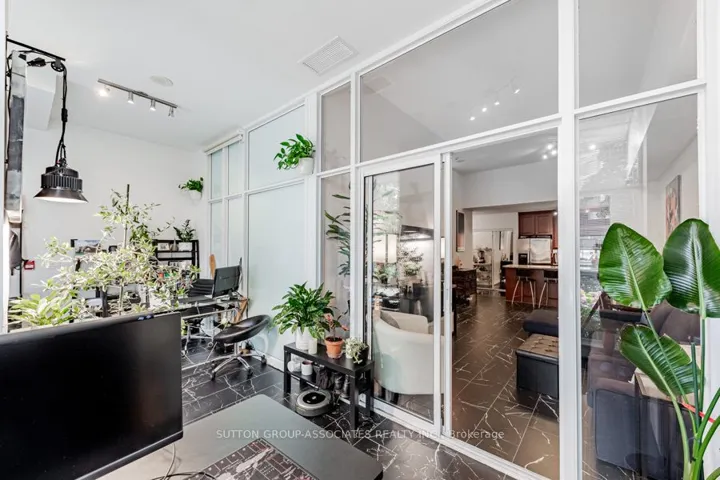+"PublicRemarks": "Live/work street front condominium facing Fleet Street. This unit offers easy access and excellent visibility for a business. It is dual-zoned, making it ideal for a small business or office, or as a lovely 1+1 condo unit. Welcome to West Harbour City! This rarely available south-facing unit is a charming and well-appointed 1-bedroom plus office space condo that truly feels like home. The spectacular floor plan boasts a bright and spacious open-concept layout with soaring 11-foot ceilings and two separate walk-outs, one to Fleet Street and the other to the condo building. The functional kitchen is equipped with a built-in breakfast bar and stainless steel appliances, while the front office is generously sized. The building offers excellent amenities, including an indoor pool, fitness center, sauna, rooftop patio, and more! Ideally situated in a highly desirable neighborhood in the heart of downtown Toronto, this unit is 814 sq. ft. as per the floor plan. Extras include being just steps away from the lake, Farm Boy, Loblaws, TTC, schools, shops, restaurants, parks, Harbourfront, and quick access to the highway. The unit features brand new Italian porcelain tile installed throughout recently."