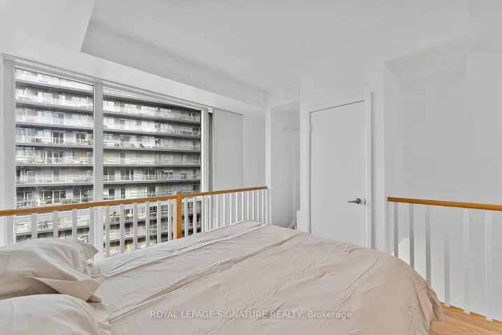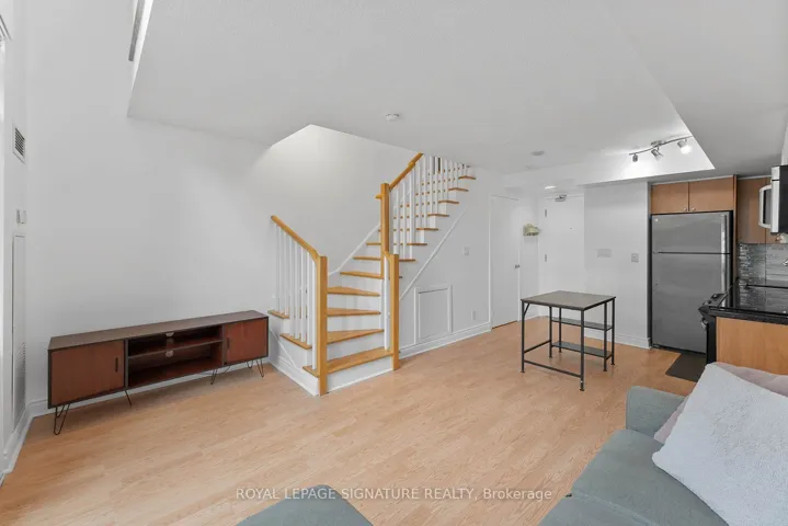 +"PublicRemarks": "Turn-key and freshly painted, this bright two-storey suite offers a functional layout and exceptional natural light. The kitchen is generously sized and overlooking the living room, creating an open and connected main living space . The living room features a walk-out to the balcony and dramatic two-storey, floor-to-ceiling windows that fill the suite with natural light. A convenient 2-piece powder room completes the main level. Upstairs, the spacious bedroom includes in-suite laundry and a private ensuite bath, offering a comfortable and practical retreat. Ideally located close to everyday amenities, with Loblaws across the street and the Fleet streetcar at your doorstep. Enjoy being minutes from the waterfront and green space at Coronation Park. Parking and locker included."