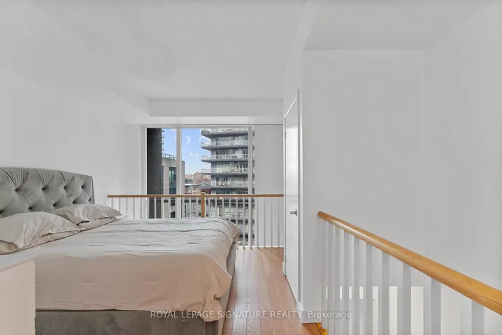 +"PublicRemarks": "Turn-key and freshly painted, this bright two-storey suite offers a functional layout and exceptional natural light. The kitchen is generously sized and overlooking the living room, creating an open and connected main living space . The living room features a walk-out to the balcony and dramatic two-storey, floor-to-ceiling windows that fill the suite with natural light. A convenient 2-piece powder room completes the main level. Upstairs, the spacious bedroom includes in-suite laundry and a private ensuite bath, offering a comfortable and practical retreat. Ideally located close to everyday amenities, with Loblaws across the street and the Fleet streetcar at your doorstep. Enjoy being minutes from the waterfront and green space at Coronation Park. Parking and locker included."