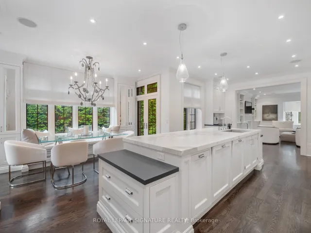 +"PublicRemarks": "This landmark Tudor residence is located on one of the most prestigious streets in Forest Hill South. Owned by only two families since its original construction, the home has been taken back to the studs and redesigned with an uncompromising commitment to quality. Every element has been elevated blending timeless architectural charm with refined, modern finishes. Offering over 5,000 sq.ft. above grade (plus a fully finished lower level), the home opens with a grand marble-clad foyer framed by classic wood-panelled walls. The main level includes formal living and family rooms, both with gas fireplaces, and an entertainers dream kitchen featuring marble countertops and backsplash, gas-burning stove, oversized island, and top-tier built-in appliances. The formal dining room comfortably seats 12 and connects seamlessly to a private, landscaped backyard terrace. The second level is anchored by a tranquil primary suite with dual walk-in closets, a spa-inspired five-piece ensuite, and a gas fireplace. A second bedroom offers its own ensuite, dressing area, and an adjacent home office. The third floor features three more bedrooms with custom built-ins and a spacious family/rec room. The lower level includes a nanny/in-law suite, custom wine cellar, gym, laundry, storage, and a mudroom with direct access to the built-in two-car garage and private side entrance. Located just moments from Forest Hill Village, top-rated schools, and the area's finest parks and amenities, this is a rare opportunity to own one of Toronto's most iconic and sophisticated homes."