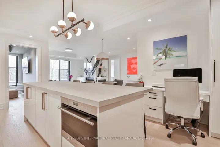 +"PublicRemarks": "Welcome to Forest Hill's prestigious boutique residence. This elegant 2+1 bedroom suite offers beautifully designed open-concept living with expansive principal rooms and abundant natural light. The chef's kitchen features top-of-the-line Wolf appliances and an impressive 10-foot porcelain centre island, perfect for both everyday living and entertaining. New oak hardwood floors and custom built-in cabinets throughout, complemented by a large laundry room, spacious pantry and linen closet. The living and dining areas open to a balcony with gas line for BBQ, with a walk-out from the den. The primary suite offers a walk-in closet and a spa-inspired ensuite with double vanity, soaker tub, and glass shower. The second bedroom features its own 3-piece ensuite, walk in closet. Two parking spaces and a locker included . Building Designed by Richard Wengle, interiors by Brian Gluckstein. Steps to shops, cafes, transit & top private schools. Building amenities include, a 24-hour concierge, valet and porter service, guest parking, gym, lounge with catering kitchen, and party room. A rare opportunity in one of Toronto's most prestigious neighbourhoods. A must see!"
