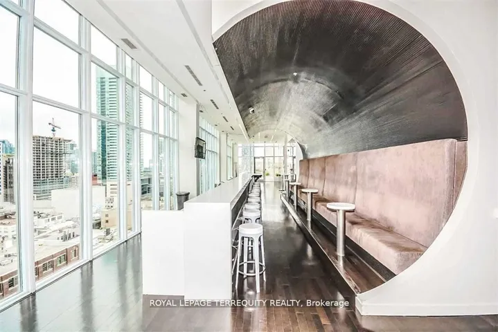 +"PublicRemarks": "Rent-Controlled Unit. Spacious 2-bedroom, 2 full bathroom condo in the heart of downtown Toronto with parking included. Bright south-facing exposure fills the suite with natural light. Window coverings have been updated with custom roller blinds in the living room and primary bedroom. Generous open-concept living and dining area with 9' smooth ceilings and real hardwood flooring throughout. Functional and unique layout with excellent bedroom separation. Primary bedroom with a very large walk-in closet provides ample storage. The second bedroom opens to the hallway rather than the kitchen (unlike other units). Please note the second bedroom does not have a window. Located between the vibrant Entertainment and Financial Districts with easy access to top dining, shopping, theatres, and transit. Building amenities include a 24/7 concierge, fully equipped gym, hot tub, outdoor pool, rooftop patio, lounge, and party room."