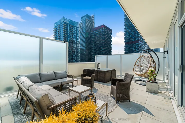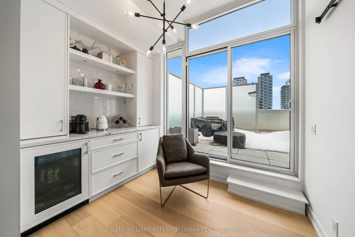 +"PublicRemarks": "A Rare Midtown Terrace Residence at Yonge & Eglinton Welcome to a truly special offering in the heart of Yonge & Eglinton-a beautifully renovated and fully furnished 2 bedroom + den residence with an extraordinary 513 sq. ft. private terrace and sweeping unobstructed northeast views. From the moment you step inside, the attention to detail is unmistakable. The suite has been completely renovated with elegant wide-plank engineered hardwood flooring throughout and a stunning designer kitchen featuring sleek new cabinetry, Quartz counters, and an impressive 8-foot waterfall island that becomes the natural gathering place for entertaining. The open-concept living space is framed by 10-foot ceilings and floor-to-ceiling windows, allowing natural light to pour in while creating a seamless connection to the spectacular terrace-an outdoor retreat rarely found in city living. Whether hosting summer dinners under the stars or enjoying a quiet morning coffee above the city, this terrace transforms the home into something truly special. The primary suite offers a peaceful escape, complete with a large walk-in closet, additional closet space, and a beautifully appointed 3-piece ensuite. A generous second bedroom and versatile den provide flexibility for guests, a home office, or additional living space. Perfectly positioned steps to the subway, and surrounded by some of Toronto's best restaurants, cafés, shopping, and entertainment, this residence offers the ultimate walkable midtown lifestyle with near-perfect Walk, Transit and Bike Scores."