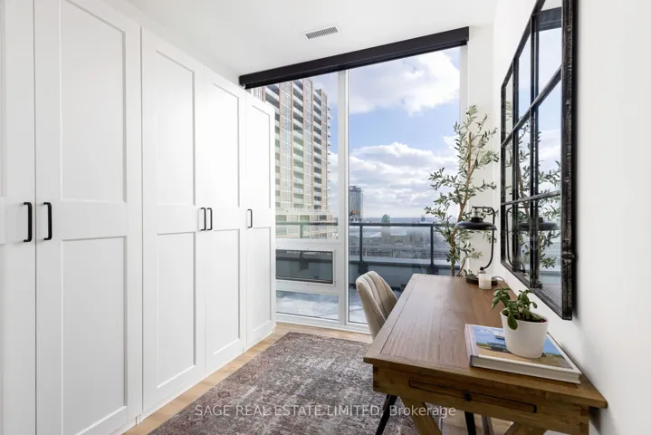 +"PublicRemarks": "Experience the best of summer with this rare 500-square-foot wraparound terrace and gas line hookup - Liberty Village's premier outdoor living opportunity. This corner 3-bedroom + den residence at 135 East Liberty offers breathtaking unobstructed lake views from its expansive south-east terrace, complemented by custom motorized floor-to-ceiling blinds throughout. Built in 2021, this modern suite showcases thoughtful design throughout - from 9-and-a-half-foot ceilings and floor-to-ceiling windows without bulkheads, to engineered hardwood floors and sound-attenuated windows that create a peaceful sanctuary above the city. The intelligent layout maximizes privacy with most walls unshared with neighbours. The chef's kitchen features premium finishes including quartz countertops and backsplash, custom island, stainless steel appliances (integrated fridge/dishwasher), and soft-close cabinetry. Adjacent custom bar area with beverage/wine cooler and built-in console creates the perfect entertaining space. Three generous bedrooms include a primary suite with south-facing lake views, direct terrace access, and 4-piece ensuite. The versatile second bedroom functions perfectly as a home office for work-from-home professionals. Corner third bedroom boasts eastern city views through a wall of windows. Premium building amenities (gym, party room, rooftop terrace, communal BBQs, shared workspace, concierge), one indoor parking spot, and a premium locker (close to parking space - huge bonus). Steps to Trinity Bellwoods, King West entertainment, Liberty Village dining, and waterfront trails. Easy access to Gardiner/DVP, Exhibition GO and Waterfront Streetcar loop, for commuters moving to the city. Maintenance: $1,035.32 includes heat, cac, common elements, internet and building insurance."