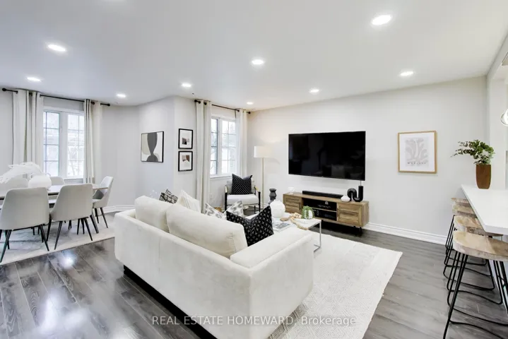 +"PublicRemarks": "Beautiful, spacious corner unit townhome in the highly sought-after Alton Village, quietly tucked away while still offering convenient access to top-rated schools, shopping, restaurants, parks, and major highways. Backing onto green space and facing the park, this home is surrounded by mature trees, providing a private and naturally secluded setting. Bright northeast exposure fills the home with abundant natural light throughout the day.This carpet-free home features durable laminate flooring throughout and modern pot lights, creating a warm and inviting atmosphere. The open-concept main level is ideal for both everyday livingand entertaining, highlighted by a stylish living room with elegant wall panelling, a spacious dining area, and a well-appointed kitchen complete with stainless steel appliances, ample cabinetry, and a functional layout.Enjoy outdoor living on thewrap-around corner balcony, perfect for morning coffee or evening relaxation, with beautiful views of the surrounding greenery and the Niagara Escarpment. An upgraded oak staircase with railings leads to the upper level, where you'll find two generouslysized bedrooms, including a primary retreat with a walk-in closet and 3-piece ensuite, along with a well-maintained 4-piece bathroom for added convenience.The lower level offers a versatile media/den space, a convenient laundry area, and inside access to a spacious garage with additional storage.This private, well-maintained corner unit townhome is an exceptional opportunity, featuring low maintenance fees in one of Burlington's most desirable family-friendly communities."