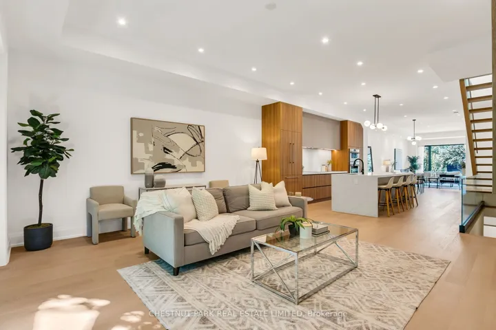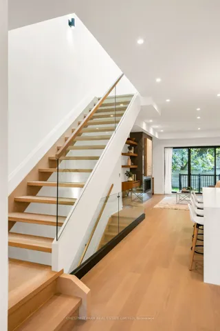 +"PublicRemarks": "Tucked away on a quiet, tree-lined cul-de-sac in coveted Upper Forest Hill, this custom-built home offers over 3,500 sq. ft. of meticulously crafted living space. Designed with both sophistication & function in mind, every detail has been carefully considered to create a residence that is as stylish as it is welcoming. Step inside & feel the sense of light & openness that defines the main floor. Soaring 10 ceilings & expansive windows flood the living & dining spaces with natural light & sleek finishes set a tone of understated luxury. At the heart of the home, the kitchen impresses with a striking waterfall centre island, premium integrated appliances & storage, the perfect balance of beauty & utility. The family room, anchored by a modern gas fireplace & stone facade, opens seamlessly onto the deck & backyard. The architectural glass & wood staircase rises gracefully to the 2nd level, where 3 skylights brighten every step. The primary bedroom is a sanctuary, featuring a generous walk-in closet & a 5-piece spa-like ensuite with a deep soaker tub, double vanity & heated floors. 3 additional bedrooms are well-proportioned, sharing a contemporary 4-piece hall bath, while a convenient second-floor laundry adds ease to everyday living. The lower level extends the home's living space with incredible versatility & feels like a main floor with a walkout to a covered patio & nearly floor to ceiling windows. A spacious rec room, complete with a wet bar, provides the ideal backdrop for casual entertaining. A 5th bedroom & full 3-piece bathroom are perfectly suited for guests, while the mudroom with rough-in for a 2nd laundry & direct garage access & heated floors enhances convenience. This home is more than just a beautiful place to live - it's a lifestyle. A true blend of modern design, thoughtful function & Perfectly located near top-rated schools, the shops & restaurants along Eglinton & convenient TTC access."