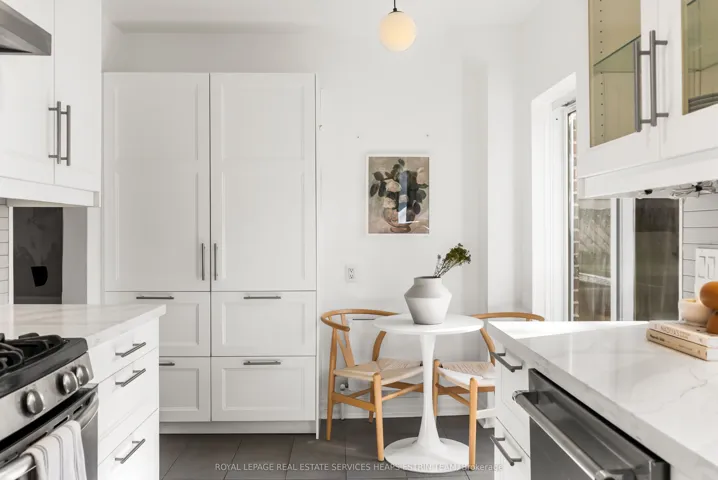 +"PublicRemarks": "Ideally located in the heart of South Leaside within steps to the amenities on Bayview Avenue, this classic brick semi-detached home offers timeless charm, comfort, and an ideal setting for family living. A welcoming front porch creates a lovely neighbourhood feel and provides the perfect place to enjoy the quiet, tree-lined surroundings. Inside, the home features a bright and comfortable layout with an open living and dining room concept with white oak floors and a fireplace flanked by built-ins, creating an inviting atmosphere for everyday living and entertaining. At the rear of the home, the renovated kitchen offers Caesarstone countertops, stainless steel appliances and a walkout to the rear deck and gardens, providing an ideal space for outdoor dining, relaxation, and play. The second level includes three well-proportioned bedrooms, including a spacious primary bedroom, each with dedicated closet space. A conveniently located four-piece renovated bathroom serves the upper level. The finished lower level adds valuable additional living space with a large recreation room perfect for relaxing, family activities, or a home office. A laundry room with laundry sink and abundant storage space adds practicality and convenience. At the rear of the property, a detached garage is accessed from the laneway providing easy parking and additional storage. In school district for Bessborough Elementary and Middle School, St Anselm and Leaside High School. Just moments from the shops and amenities of Bayview Avenue as well as the Eglinton LRT, parks, skating rinks, tennis courts and community centres. This home offers a wonderful opportunity to enjoy comfort, convenience, and community in one of Toronto's most desirable neighbourhoods."