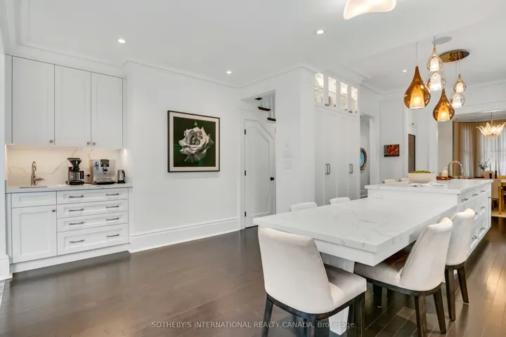 +"PublicRemarks": "Rare Opportunity to own extraordinary Cabbagetown "Double House" masterfully combining two classic Victorians into one luxurious, design-forward ~5,000 sf family home! Spectacularly renovated contemporary Bellini chef's kitchen w/oversized sociable centre island, integrated breakfast bar & state-of-the-art appliances is heart of the home. The kitchen flows seamlessly into spacious formal dining room w/soaring ceilings, crown mouldings, wood burning fireplace & original mantle, while a separate salon-style living room w/gas fireplace offers an elegant retreat w/ample space for a grand piano! Impressive centre hall plan & front entry, sweeping staircases, 2 separate back entrances, main floor study & powder rm make for elevated daily living & effortless entertaining on a grand scale! Upstairs, an expansive primary retreat spans the entire east half of the house featuring a spa-inspired ensuite w/contemporary roll-top tub, large w/i closet dressing room & serene pvt study. The west half of the 2nd floor offers two more spacious bedrooms: one w/ensuite & dressing room, and a sumptuous family bath with soaker tub. Dramatic loft-style 3rd floor retreat features vaulted ceilings, spacious office/library & super cool family/media room with wet bar, circular wood-burning fireplace, striking round window framing southwest views to iconic CN Tower & w/o to private rooftop deck. Located in a coveted enclave at the corner of picturesque Sword & Gerrard this extraordinary home offers the best of both worlds with the charm of Cabbagetown at your back door & the energy of the city on your front doorstep. This is city living at its finest - ideal for the sophisticated urbanite looking for that elusive & unique downtown property without compare! Home gym, 2-car parking & just steps to the vibrant shops, cafés & restaurants of Parliament & Dundas and TTC on your doorstep this truly is a one-of-a-kind urban sanctuary just steps to the Riverdale Farm. ***Open House Sat & Sun 2-4PM***"