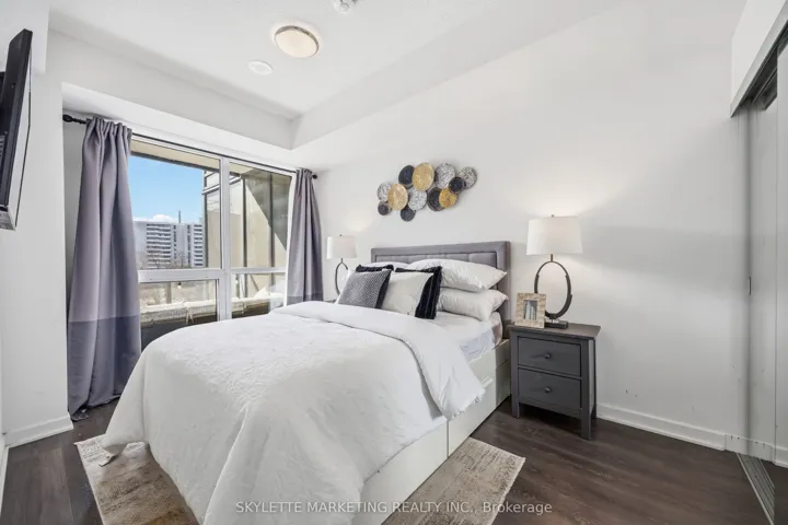 +"PublicRemarks": "Welcome to this thoughtfully designed 1 bedroom + den, 2 full bathroom condo offering approximately 657 sq.ft. of modern, functional living space-perfect for professionals, couples, or anyone seeking comfort and convenience in a well-connected location. Featuring wide-plank laminate flooring throughout with no carpet, this suite offers a clean, contemporary feel that's also easy to maintain.The L-shaped dine-in kitchen is both stylish and practical, complete with a built-in cooktop and wall oven, built-in over-the-range microwave, integrated dishwasher, and stainless steel fridge. With generous counter space and a smart layout, it's ideal for everyday cooking as well as hosting friends or family. The open-concept living and dining area is bright and inviting, with direct access to a covered balcony showcasing clear south-facing views of CN Tower and a perfect spot to unwind, enjoy your morning coffee, or take in the natural light throughout the day. The spacious primary bedroom offers comfort and privacy and its own ensuite bathroom, while the versatile enclosed den can easily function as a home office, reading nook, or guest bedroom. With two full bathrooms, this layout provides added flexibility and convenience for both daily living and entertaining. Additional features include one underground parking space and one locker, along with access to an impressive range of building amenities, including an indoor pool and hot tub, fully equipped gym, movie theatre, party room, games room, concierge/security, outdoor BBQ area, and free visitor parking. The building offers direct underground access to Freshco. Ideally situated near major routes including the Don Valley Parkway, Highways 401 and 404, and just minutes from public transit and shopping at Fairview Mall, this home offers the perfect balance of accessibility and lifestyle. A fantastic opportunity for end-users looking for a move-in-ready space in a vibrant and convenient neighbourhood."