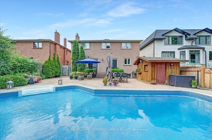 +"PublicRemarks": "Here it is - everything you want in a family home! Proudly maintained and thoughtfully updated, this solid 5+ bedroom, 5 bath home offers exceptional space, warmth and long-term pride of ownership on a coveted 50 x 150' south lot with patios, gardens and private pool oasis! Smart floor plan. A welcoming foyer has vaulted ceilings. Solid hardwood floors carry through elegant living and dining rooms, while the main floor family room with fireplace and custom built-ins walks out to the patio and pool. A main floor office, laundry room and powder room and direct garage access add everyday practicality. The family-sized kitchen is the heart of the home and features quality cabinetry, granite counters, quality stainless steel appliances and a bright breakfast area. Walk out to a private backyard retreat complete with generous stone patio, mature landscaping and a salt water in-ground pool - your own summer sanctuary. This is the perfect floor plan! Upstairs, 5 generous bedrooms all offer hardwood floors and large closets. The spacious primary suite includes a walk-in closet and a modern 5pc ensuite with heated floors, double vanity, deep soaker tub and separate shower. The finished lower level expands your living space with a huge family room with fireplace. Kid space/media room/games room++ A full bath and flexible office/bedroom options/great guest rooms/home gyms! Fabulous space to use as you choose! Handy people will love the well-planned workshop. Replaced windows 2016, recent gas furnace and central air 2022, replaced roof shingles & updated insulation 2017, 200 amp, 2 Car garage has 60amp 240V service, Updated kitchen has many newer stainless appliances, double private drive and perennial gardens with inground sprinkler complete this exceptional home. Ideally located close to Yonge Street, subway, many parks and top-ranked Churchill PS and Willowdale MS. A timeless family home in one of North York's most established and walkable neighbourhoods."