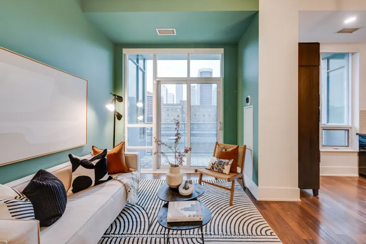 +"PublicRemarks": "Refined City Living at its best. This well maintained 1 Bed/1 Bath suite offers up 650 square feet of intelligently designed space, elevated by soaring 10 foot smooth ceilings (save the popcorn for movie night) and a layout that bucks Toronto's obsession with narrow, bowling alley floor plans. Instead a rare SW corner unit delivers a true rectangular footprint - creating natural separation between living, dining and entertaining spaces, all wrapped in windows that draw in warm afternoon light. Step out to a substantial west-facing private balcony, finished with wood patio tiles, extending your living space well beyond the interior through the warmer months. Inside, oversized windows with transoms add architectural interest, while the kitchen features its own window - because even the everyday moments deserve to be well-lit. Multiple vantage points capture perfectly framed CN Tower views, adding just the right amount of skyline drama. The bedroom is both spacious and bright, anchored by a west-facing box bay window and that signature CN Tower view, with a double closet and room to comfortably accommodate a queen or king bed. The kitchen balances function and flexibility with ample storage, granite counters, and a movable Island with butcher block top - ideal for both prep and casual dining. Full size appliances, including in-suite laundry, round out the space. Freshly painted with updated lighting throughout, including new kitchen fixtures and a bathroom sconce, plus seamless laminate recently extended into the bedroom - everything feels cohesive, clean, and move-in ready. This impeccably managed Tridel building spoils residents with a full suite of amenities: 24hr concierge, fitness-center with weights, cardio & yoga, outdoor pool deck and hot-tub with sun-bathing cabanas, BBQ area, party, theatre and business rooms and more. Steps to transit, parks, dining, shopping, everything that makes downtown Toronto worth calling home."