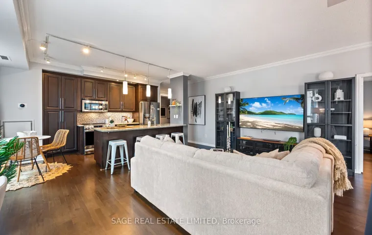 +"PublicRemarks": "Luxury Waterfront Living at Its Finest! This elegant and spacious corner suite offers a bright, open-concept layout with 9-ft ceilings, large windows, and modern finishes throughout. Featuring 2+1bedrooms and 2 bathrooms, including a generous primary retreat with 4-piece ensuite and Lutron blackout blinds. The den with French doors is ideal for a home office or guest space. The upgraded kitchen showcases granite countertops, glass backsplash, Kohler gooseneck faucet, and premium appliances including LG fridge & convection stove, Bosch dishwasher, and new washer (2026). Enjoy a large private balcony with $20K Lumon retractable glass enclosure, outdoor heater, electrical outlet, and peaceful tree-top views-perfect for year-round use. Additional features include updated light fixtures, new toilets and hardware, laminate flooring, heat pump(approx. 4 yrs), and Nest thermostat. Includes parking & locker. Located in a sought-after waterfront community, steps to parks and trails and The Flagship West Block featuring Loblaws, Shopper ect.."