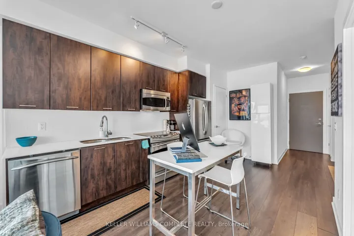 +"PublicRemarks": "This 10th-floor, 1-bedroom-plus-den hits all the marks for downtown convenience. Transit couldn't be easier: Bathurst, King, & Queens Quay streetcars are all just steps away. Everything you need is walkable: Loblaws, Shoppers, LCBO, Farm Boy, STACKT Market & more are all within blocks. Lake Ontario is 3 blocks south.The building delivers on amenities: concierge, gym, saunas, yoga room, party room with kitchen, theatre room, games room with pool table and foosball, large rooftop terrace & BBQ area, and secure visitor parking.Your neighbourhood: Fort York Library, Aroma Espresso Bar, Tim Hortons, The Bentway for year-round skating and events. Billy Bishop Airport is close by (ideal for frequent travelers), Rogers Centre 15 minutes, Exhibition Place 15 minutes, The Well 15 minutes. CN Tower views right outside.The unit itself is immaculate and spacious, with a wall of windows that brings in ample natural light. Bathroom tile has been updated. Soft-close kitchen cabinetry, plus added storage cabinets in kitchen and bathroom, as well as kitchen island with seating, are included. The 105-square-foot balcony can seat many, and a storage locker is included. Den could be used as office, dining room, or 2nd bedroom. This is efficient downtown living: transit-connected, amenity-rich, walkable to work and play. No car needed, but if you have one, parking spaces for rent come available often. Move in and get on with your life."