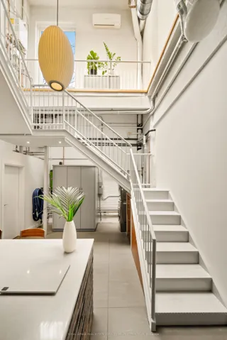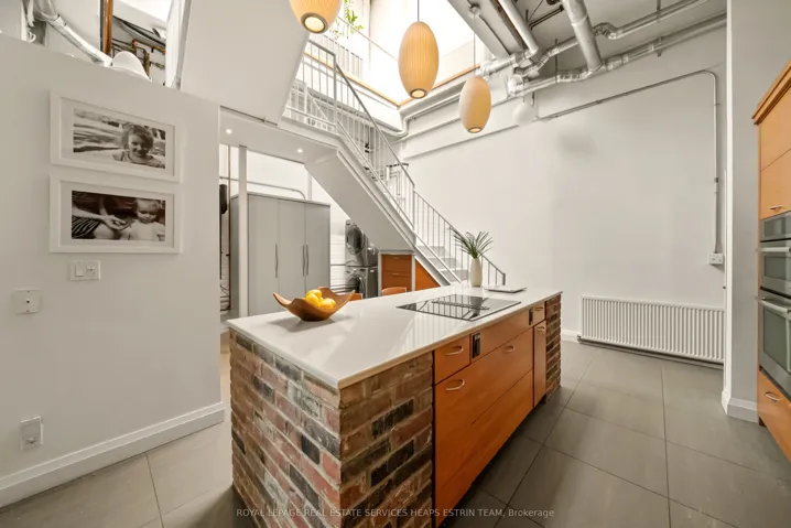 +"PublicRemarks": "The Evening Telegram Lofts Authentic Loft Living Discover a rare opportunity to own a piece of Toronto's industrial heritage in the iconic Evening Telegram Lofts, a landmark conversion of the historic newspaper press building into authentic hard loft residences. This expansive live/work space masterfully blends vintage character with modern refinement across three thoughtfully designed levels, offering over 2,200 square feet of versatile living. Drenched in natural light from oversized windows and an enormous skylight, the unit feels bright, open, and inspiring throughout. Designed with flexibility in mind, this expansive loft can be fully adapted for private living, offering up to five sleeping areas and three bathrooms, anchored by a dramatic living and dining room with soaring 13-foot ceilings. Alternatively, as it is zoned for live/work use, the two smaller main-floor rooms can easily be converted into offices, creative studios, or client meeting spaces, offering an ideal setup for entrepreneurs or professionals seeking a dynamic home environment. Rich with historic character, this loft seamlessly incorporates elements of the original Evening Telegram building. The doors leading into the kitchen are repurposed from the original building entrances, and the striking kitchen island is anchored by brick footings that once supported the newspaper's mighty printing press a true homage to the past brought into contemporary living"