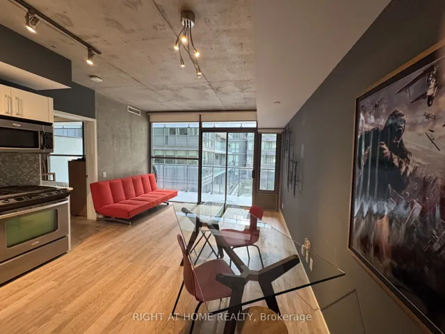 +"PublicRemarks": "Welcome To Trendy King St. West, One Of Toronto's Most Desirable Locations. This Fully Furnished Luxury 1 Bedroom Condo Suite Features A very Functional Layout With 520 Sf Of Living Space Plus A Large 155 Sf Balcony. 9 Foot Exposed Concrete Ceilings, Floor-To-Ceiling Windows. Engineered Hardwood Floors Throughout, S/S Appliances, Gas Cooking, Gas Bbq On balcony. Deep Soaker Tub With Glass Shower Enclosure, Professionally Installed Closet Organizers, Window Solar Blinds. Walk To Entertainment, Fashion & Financial District, Restaurant Row. Public Transit At Your Door. 1 Parking Spot Included."