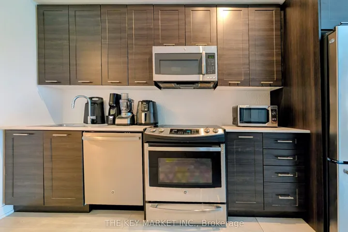 +"PublicRemarks": "1 Parking Included! Experience elevated urban living in this rarely offered 1+Den suite in the vibrant Fort York, offering 573 sq. ft. of intelligently designed interior space+balcony. Thoughtfully laid out with 9-foot ceilings and floor-to-ceiling windows, this bright and airy home is filled with natural light and showcases open west-facing city views. The open-concept living and dining area seamlessly extends to the modern kitchen features stone countertops, stainless steel appliances, and sleek cabinetry that blend style with everyday functionality. The versatile den/study provides a dedicated space for working from home, reading, or additional seating, catering perfectly to today's flexible lifestyle. The extra-large primary bedroom comfortably fits a king-size bed and is complemented by a spacious walk-in closet, offering exceptional storage. Additional highlights include laminate flooring throughout, ensuite laundry, custom blinds, and one included parking space, making this home as practical as it is stylish. Residents enjoy access to an impressive suite of amenities, including a 24-hour concierge, fully equipped fitness centre, party room, games room, theatre lounge, guest suites, and a spectacular rooftop terrace with BBQs and panoramic skyline views-perfect for entertaining or unwinding. Ideally located just steps from the best of downtown Toronto, you are within walking distance to the waterfront, parks, trails, grocery stores, cafés, restaurants, and everyday essentials, as well as iconic destinations like the CN Tower, Rogers Centre, Scotiabank Arena, and the Financial District. With convenient access to TTC and streetcar routes, major highways, and nearby hotspots including Liberty Village, King West, and The Bentway, this home offers the perfect blend of comfort, connectivity, and vibrant city living-an exceptional opportunity to live in one of Toronto's most dynamic and sought-after communities."