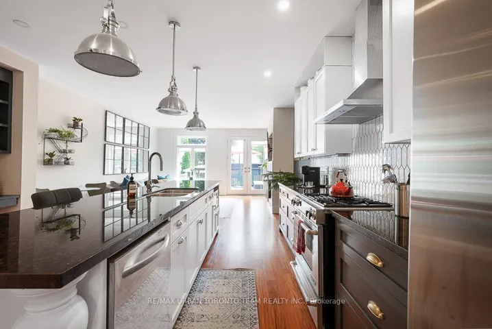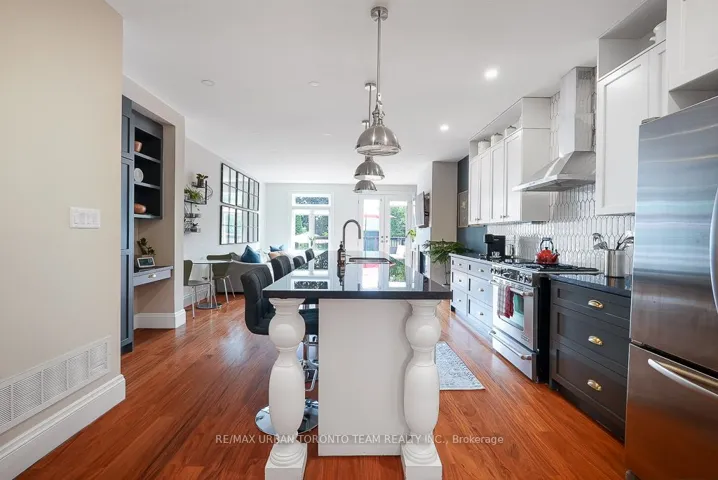 +"PublicRemarks": "Stunning Modern Victorian just steps from the energy of Trinity Bellwoods Park, tucked away on a quiet, tree-lined street in one of Toronto's most sought-after neighbourhoods.This beautifully designed home offers approximately 3,000 sq ft of thoughtfully curated living space, featuring soaring ceilings and an abundance of natural light throughout. Enjoy 9-ft ceilings on the main and third floors, 8-ft on the second, and a finished lower level with 7.5-ft ceilings-creating an airy, spacious feel on every level.The open-concept main floor is ideal for both everyday living and entertaining, anchored by a stunning 12-ft chef's island in the kitchen. A cozy family room with a gas fireplace sits just off the kitchen, while the dining area comfortably accommodates large gatherings.Step outside to your private backyard oasis, complete with a deck, patio, and green space-perfect for relaxing or hosting.Upstairs, the primary retreat features two closets and a spa-like ensuite. The third-floor loft offers incredible flexibility-ideal as a home office, gym, or creative studio. The fully finished walkout basement provides excellent additional living space, perfectly suited for a nanny or in-law suite.Additional features include separate garage parking. Offered fully furnished, this turnkey home is perfect for those seeking comfort, style, and convenience in a prime Toronto location.A rare opportunity to live just moments from Trinity Bellwoods, surrounded by top restaurants, cafés, and vibrant city life-while still enjoying the peace of a quiet residential street."