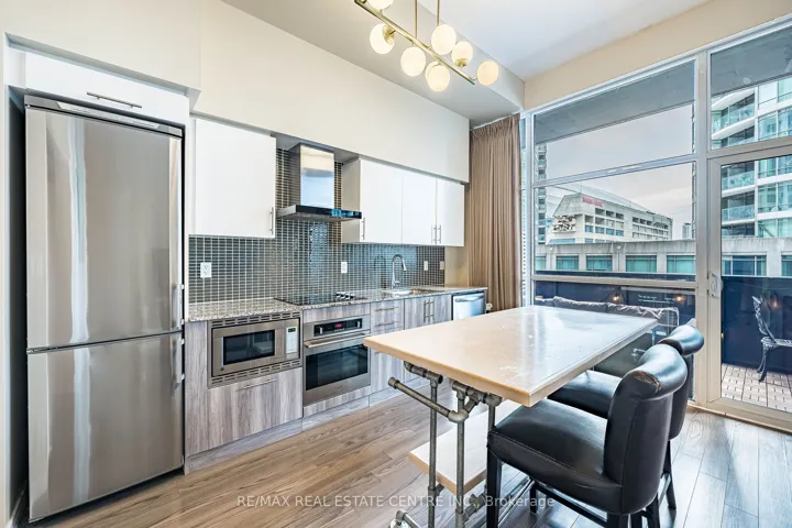 +"PublicRemarks": "Experience exceptional downtown living in this stylish one-bedroom plus den suite at Fly Condos with rarely seen soaring 11 foot ceilings! Walking in you will notice a stunning designer kitchen with two toned cabinetry, stylish stainless steels appliances including a convection microwave and oven. Plenty of space on the granite countertops, accompanied with a custom Island and views of the city! Walk out to one of the Largest Terraces in the building where you can actually enjoy yourself with space for patio furniture! Enjoy incredible views of the CN tower and and the great vibes of the city. You are welcomed with a large bedroom plenty of storage including a pantry & his AND her closets, that's right, two double closets! The master bedroom has a semi ensuite to a upgraded 4 piece bath that has a second convenient access from the common areas. Residents enjoy exceptional amenities, including a fully equipped fitness Centre, yoga studio, sauna, a media and theatre room, Huge rooftop terrace with BBQs and private cabanas, elegant party room, guest suites, and 24-hour concierge service. Ideally situated steps from the Entertainment and Financial Districts, Union Station, Rogers Centre, transit, shopping, and restaurants, this home offers unparalleled convenience and an energetic downtown lifestyle. Quick access to the Gardiner Expressway and DVP makes commuting effortless. Make this sought-after address your new urban retreat. 1 car underground parking included. Shows fantastic, show and sell with confidence."