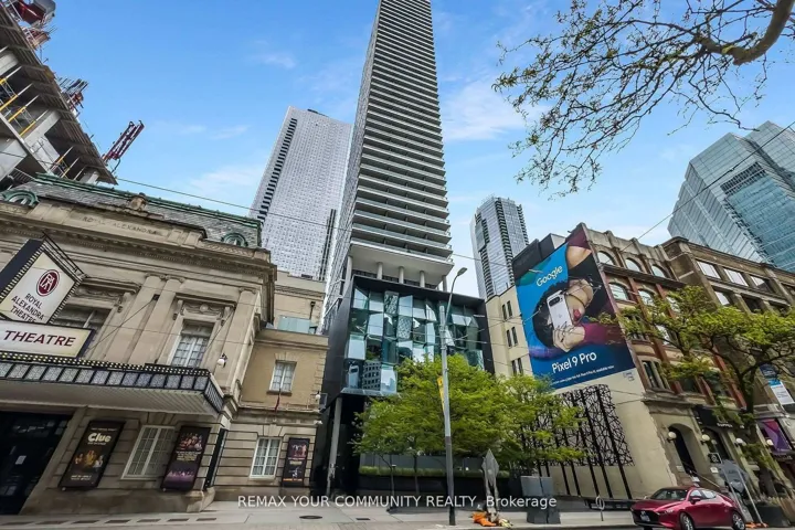 +"PublicRemarks": "A corner 2 bedroom condo with stunning views of the city, Lake Ontario, and CN Tower. Loft-like luxury of a prestigious Theatre Park Condos. Exposed concrete ceilings and feature walls, floor to ceiling windows. A gourmet kitchen with a gas cooktop and open shelves. Gas line on a spacious balcony, enjoy BBQ year round. Primary bedroom fits king sized bed. 2nd bedroom fit for a growing family or large home office with more spectacular views. Next door to Royal Alexandra Theatre, across from Roy Thompson Hall, steps to world famous King Street West restaurants. Walk score 100 out of 100!! Amenities include Outdoor pool, Gym, Party room, 24 hr concierge."