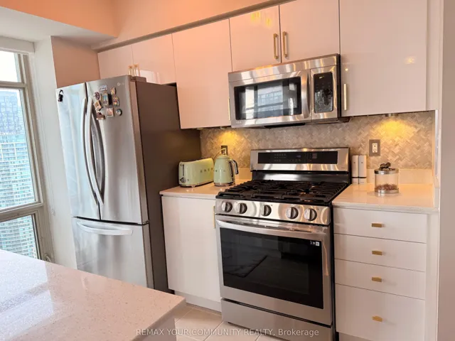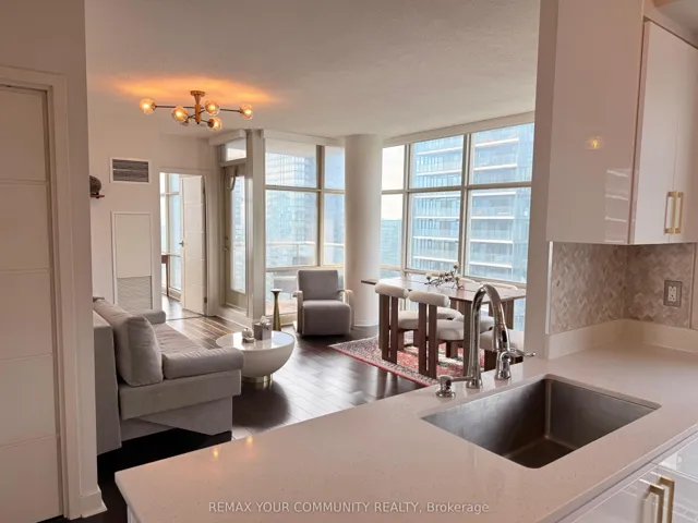 +"PublicRemarks": "Experience elevated downtown living in this rarely offered high-floor corner unit with breathtaking panoramic city views and floor-to-ceiling windows. Larger-than-average layout offering enhanced living space compared to typical units. A chef-inspired kitchen with a sought-after gas stove, and upgraded appliances. The spacious bedroom features smart motorized blinds for added comfort and convenience. The den has been enhanced with a custom closet-ideal for a home office. All utilities and parking (P1) is included. Unmatched amenities: Exclusive access to the 30,000 sq ft Super Club with fully equipped fitness centre, indoor pool, sports courts, bowling, and more. Prime downtown location: Steps to the CN Tower and Rogers Centre, transit, waterfront, restaurants, and entertainment."