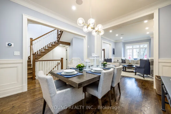 +"PublicRemarks": "Impeccably designed and custom-built Leaside home. This stunning 4+1 bedroom, 5-bathroom home offers nearly 3,700 sq.ft. of meticulously crafted living space in the heart of Leaside. Designed with timeless elegance and modern functionality, the home features soaring ceilings, refined millwork, premium hardwood floors, and a spacious open-concept layout ideal for both everyday living and sophisticated entertaining. The chef's kitchen showcases high-end appliances, custom cabinetry, an oversized island, and seamless flow to a sun-filled family room with walkout to a beautifully landscaped backyard. The upper level offers generous bedrooms including a luxurious primary retreat with walk-in closet and spa-inspired ensuite. The fully finished lower level includes a large recreation room, additional bedroom, full bathroom, and ample storage. With exceptional attention to detail and finishes that rival a model home, this property delivers turnkey luxury in one of Toronto's most sought-after neighbourhoods, steps to top-rated schools, parks, shopping, and transit. Intangibles that you wouldn't know unless you lived here: the neighbours are incredible, ultra quiet, the dead end laneway means no through traffic, gives an additional 600sq.ft. of backyard space ideal for kids play area."