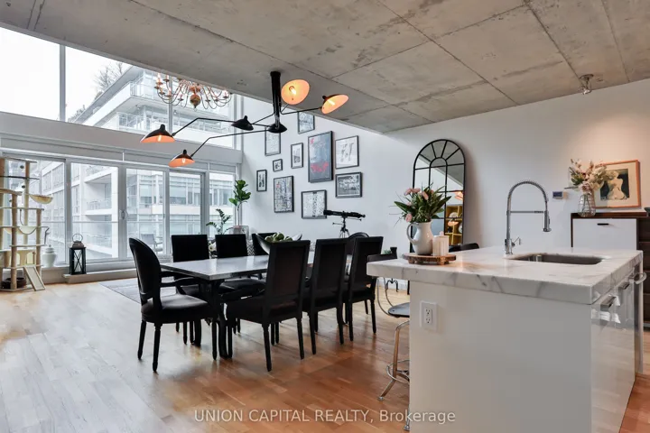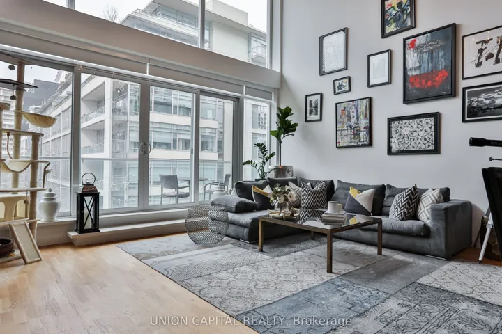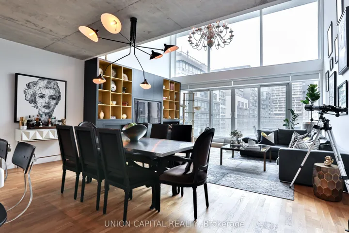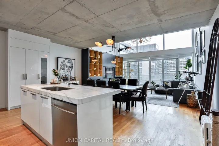 +"PublicRemarks": "Welcome to this stylish and modern two-story FULLY FURNISHED loft at the highly sought-after Seventy5 Portland. Featuring over 1,300 sq ft, soaring concrete ceilings, expansive floor-to-ceiling windows, and a bright open-concept layout, this unit offers a perfect blend of contemporary design and urban comfort. With two convenient entrances - one from the main floor and a second from the upper level - this unique layout adds both functionality and privacy. The upgraded kitchen is equipped with high-end appliances, sleek cabinetry, and a spacious island ideal for cooking and entertaining. The living and dining areas flow seamlessly and open to a private balcony, creating a great space to relax or host guests. The bedroom offers a functional layout with ample storage, while the overall design maximizes both space and natural light. Located in a well-managed building with desirable amenities, this is an excellent opportunity to enjoy vibrant city living. Ideally situated in the heart of King West's coveted Entertainment District, this property is surrounded by some of Toronto's best restaurants and lifestyle amenities. Enjoy easy access to green spaces like Trinity Bellwoods Park and Stanley Park, perfect for outdoor activities and relaxation. The area is also home to top-rated schools and convenient shopping destinations including The Well and Stackt Market."